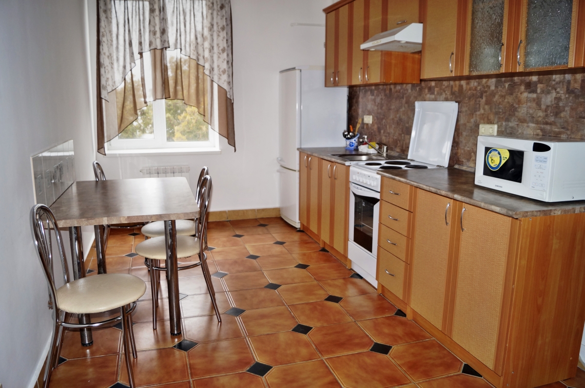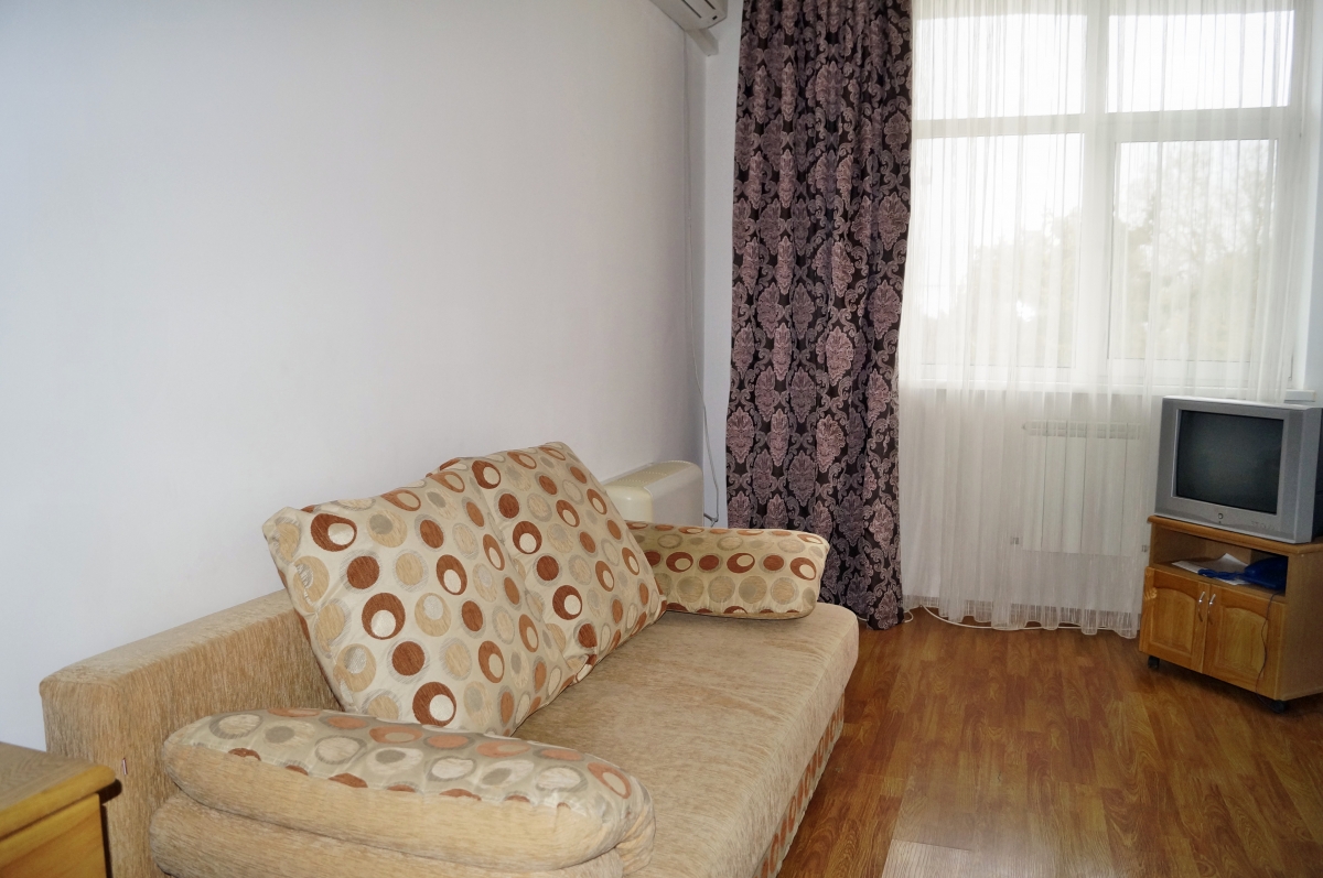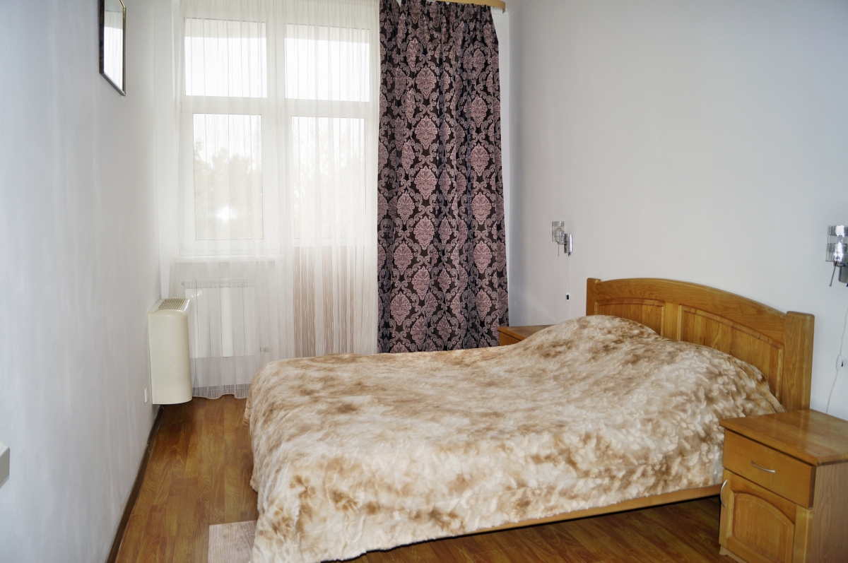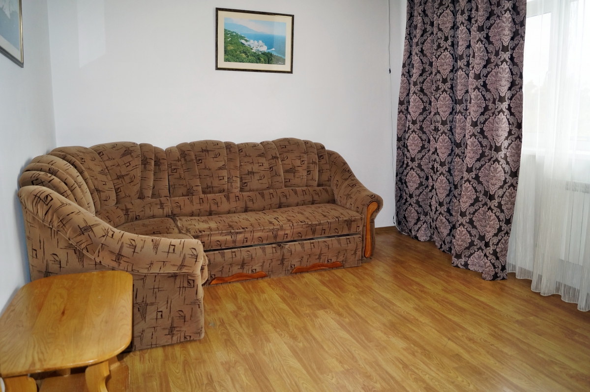 Апартаменты (с двумя балконами) рассчитан на трёх человек, площадь 85 кв.м. Возможны дополнительные места. Мебель и межкомнатные двери выполнены из натурального дерева Первая комната: большой диван-кровать, журнальный столик, телефон, мягкие кресла, телевизор ЖК, кондиционер. Вторая комната: двуспальная кровать, шифоньер, прикроватные тумбочки. Третья комната: двуспальный диван-кровать, стол с зеркалом, телевизор, кондиционер. Кухня-столовая: кухонный гарнитур, набор посуды, электрическая плита, холодильник, микроволновая печь, стиральная машина — автомат. Санузел с душевой кабиной, сушилка для белья. Гладильная доска, утюг, фен. Мебель для балкона.